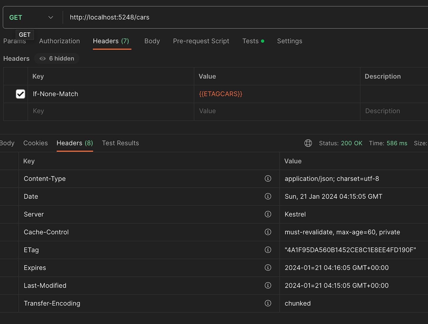 This is what clients see when they call endpoints with response caching configured.
